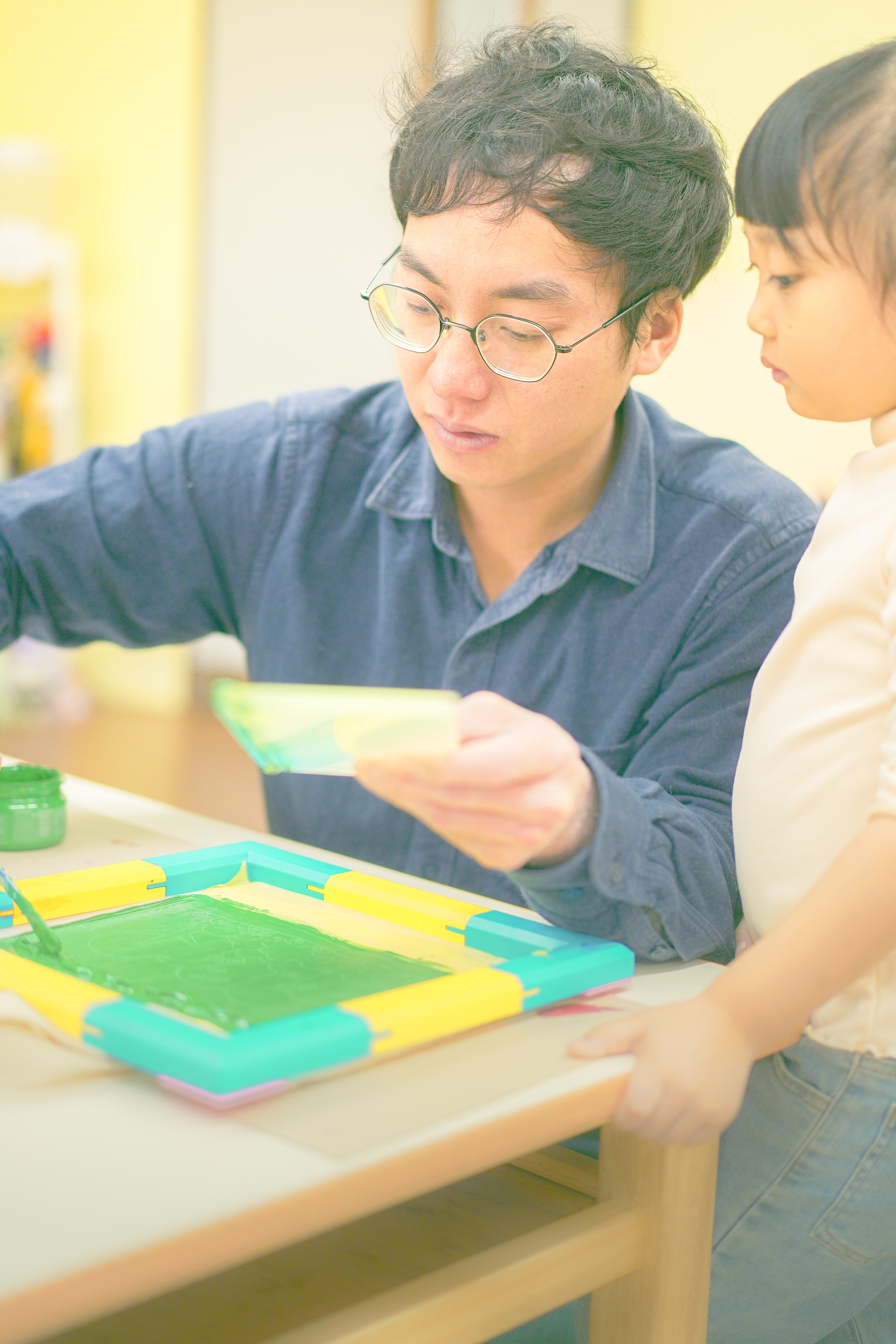 - 仁美校園校內草木蓊鬱,如同都市裡面的一塊森林綠地,孩子們在其中快樂穿梭,而仁美幼兒園的班級命名也以森林為主題,我們以此為發想,為仁美幼兒園打造了「森之舞台」。配合主體建物簡潔明亮的色調線條,作品兩面分別以「朝霧雨林」「晨溪新雨」為主題,將早晨與傍晚朦朧的光線帶入色彩設計之中,讓作品本身融入校園建物之中不顯突兀。而「森之舞台」是以孩子作為主角,讓作品本身成為配角,打造一個可以讓孩子們在上面發揮想像力,開心自由發表的小型舞台。