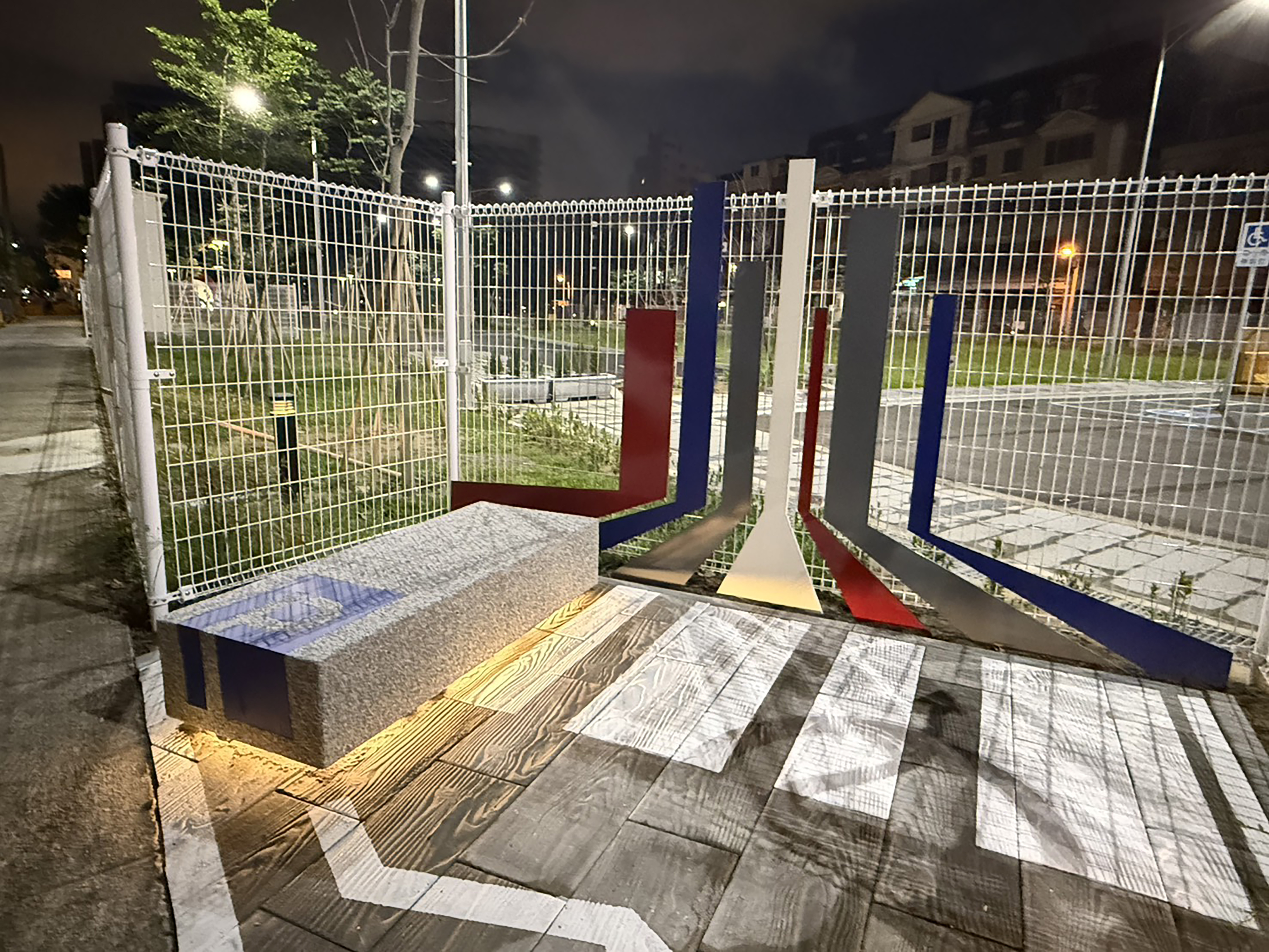 The rest & interactive space for pedestrians is designed on the basis of the pedestrian sign, combined with the image of "wait, turn, and set out again" in the waiting area. The combination of signal lamps and seats allows pedestrians to be part of the work while resting, and leads to interactions between the public and public art, thus promoting the public's connection with Taichung City Motor Vehicles Station.
