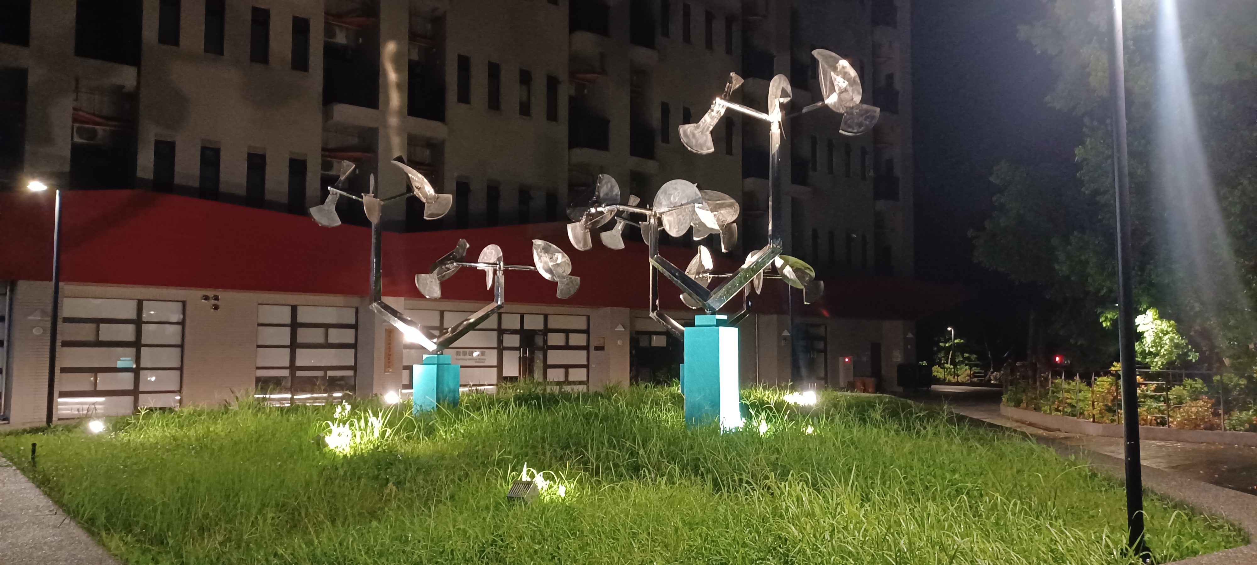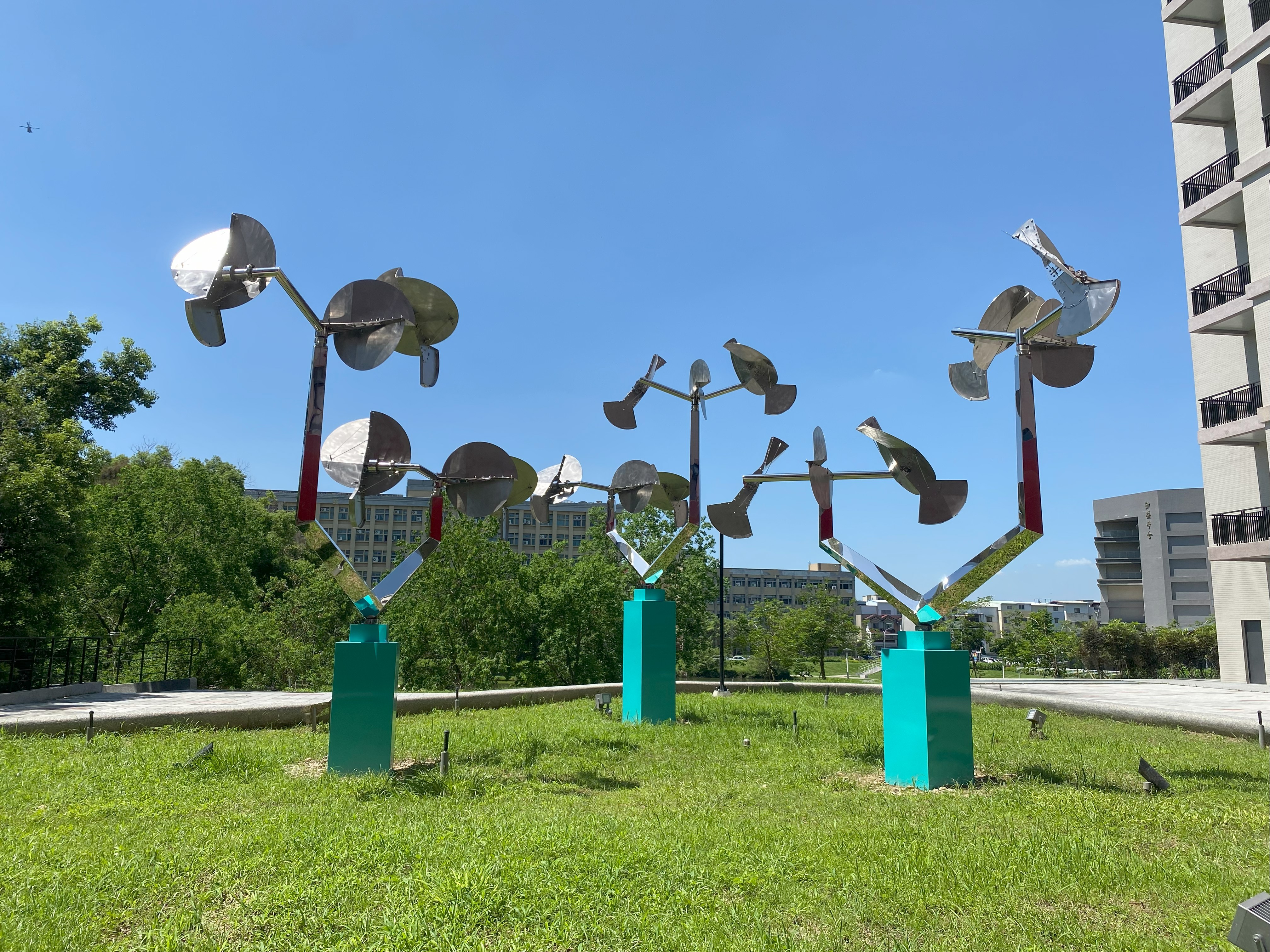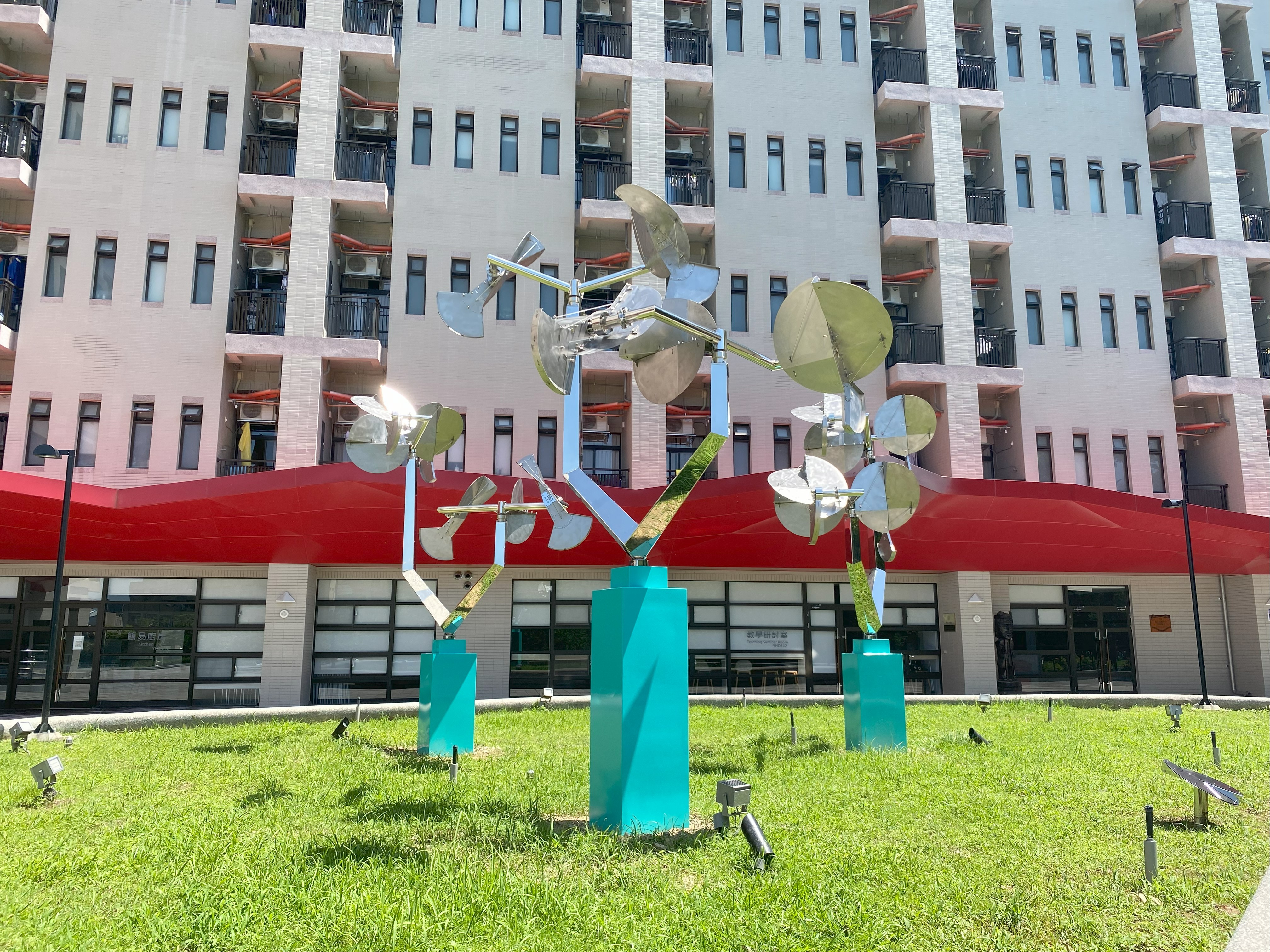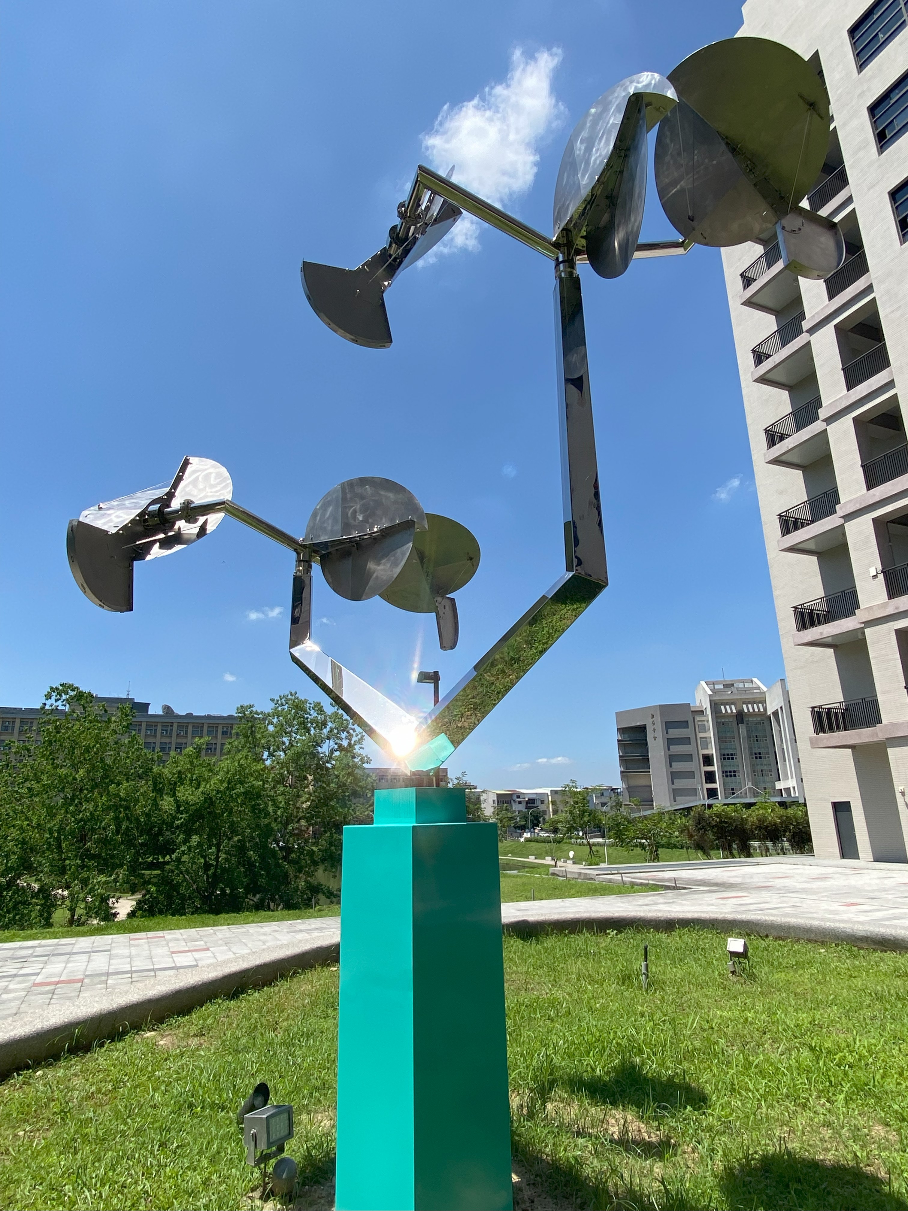 "The Four Seasons Concerto” is a wind kinetic sculpture made of titanium combined with stainless steel. Being an extension of the existing campus map, the environmental planning aims to integrate the campus space with the public art. As the thematic meaning of “The Four Seasons Concerto,” it not only presents the dynamic beauty of rhythm through the power of wind but also accompanies students to the tranquility moment in the four seasons a year. As the concept of “Concerto” implies, students immerse in the harmony rhythm of learning and growing.