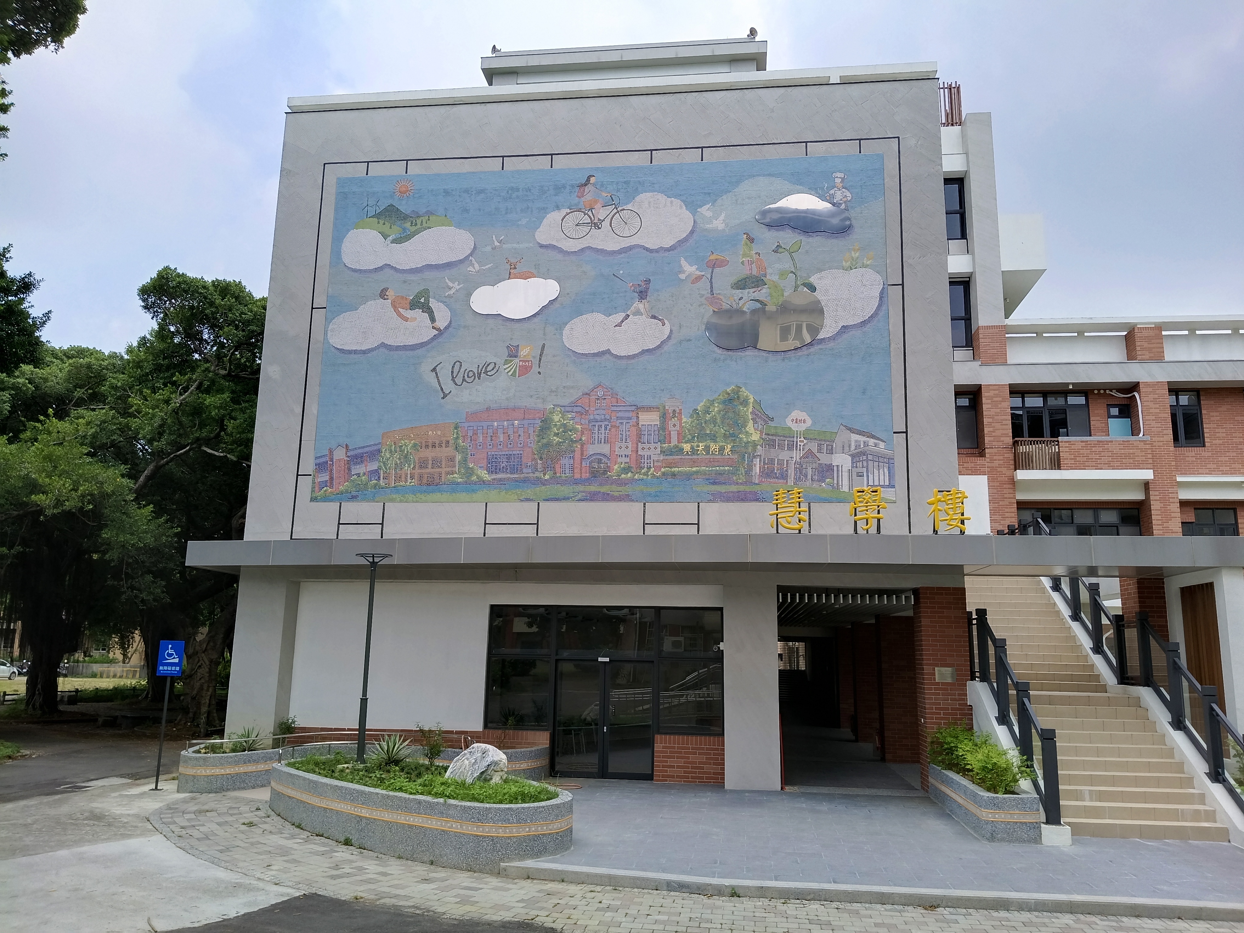 The work records the beautiful time and glory of The Affiliated Taichung Senior Agricultural Vocational High School of National Chung Hsing University, passed down from generation to generation, in a comprehensive, lively, and approachable way. It symbolizes hope and enlightenment, and also shows the mentality of optimism, innovation, and transcendence. Flying in the clouds indicates the desire for freedom and the vision for the future. The white clouds, re-entering our hearts, will lead the students to fly, making them hopeful about the inheritance of the school’s heritage and spirited in finding their way to success.