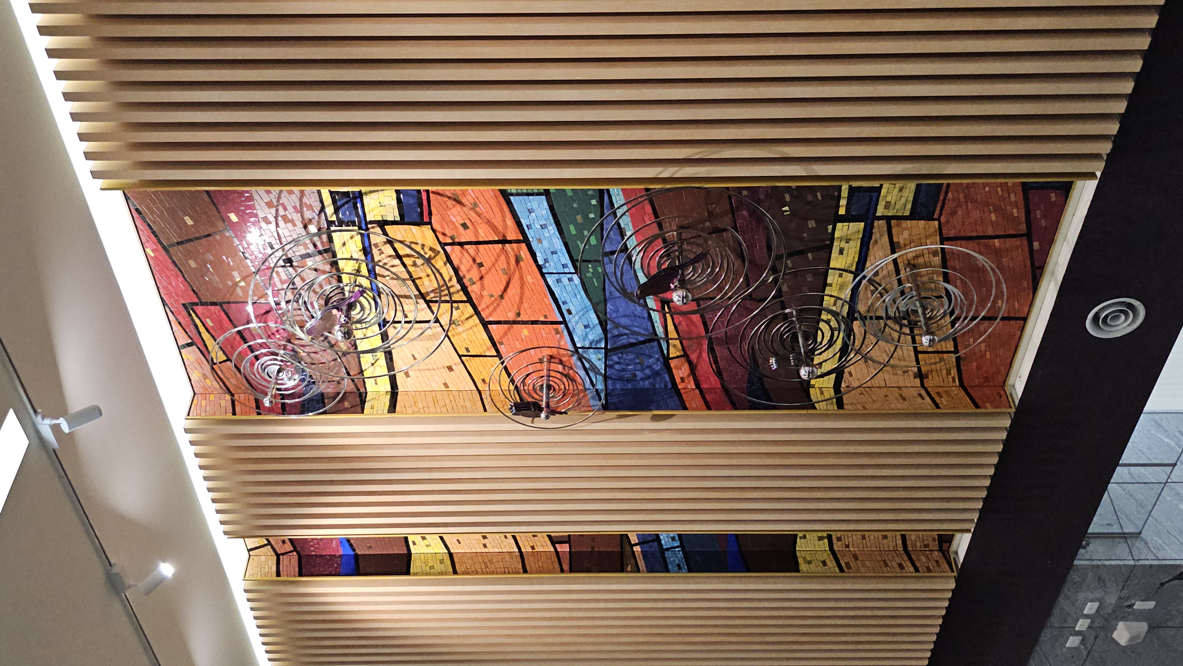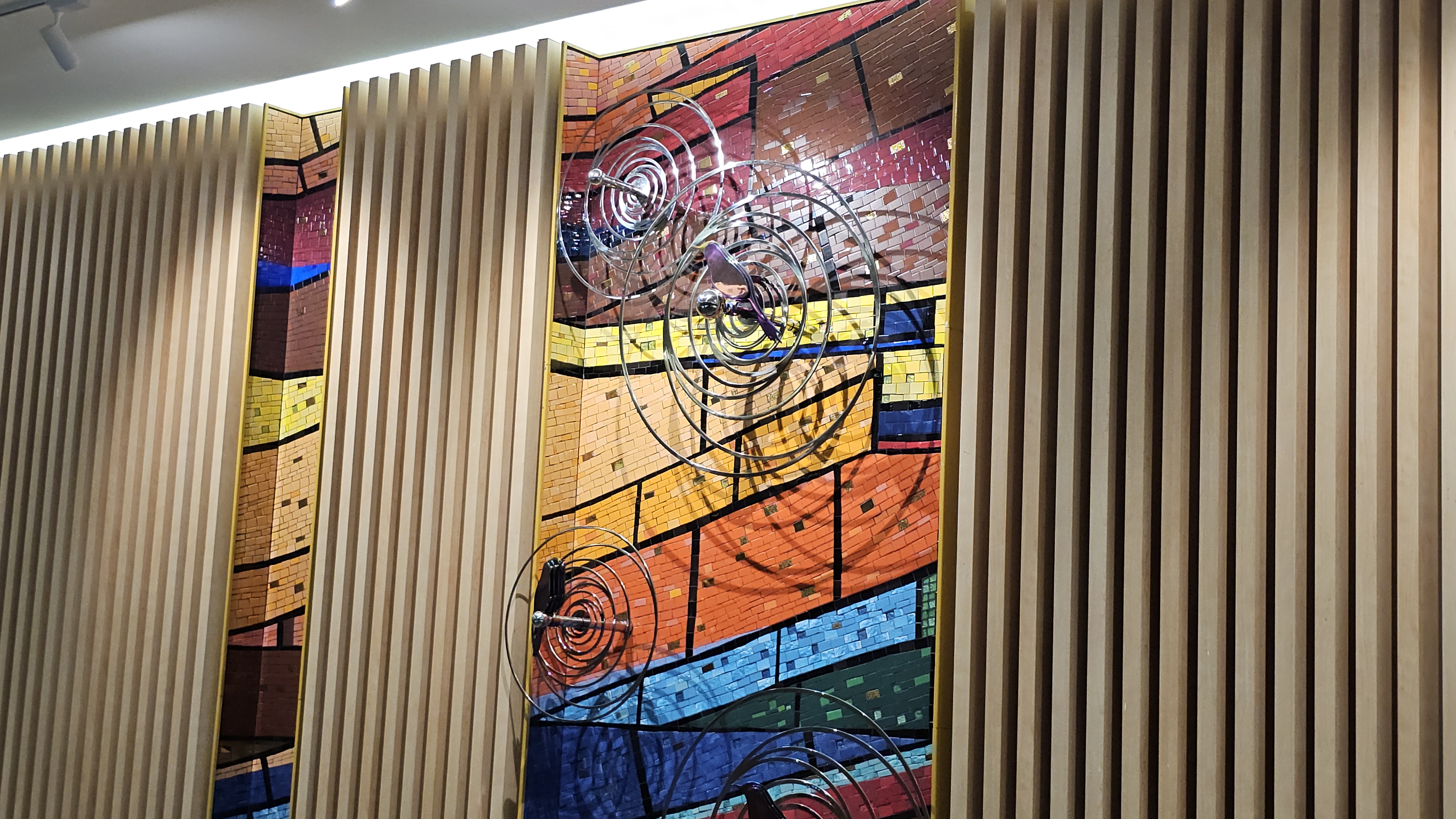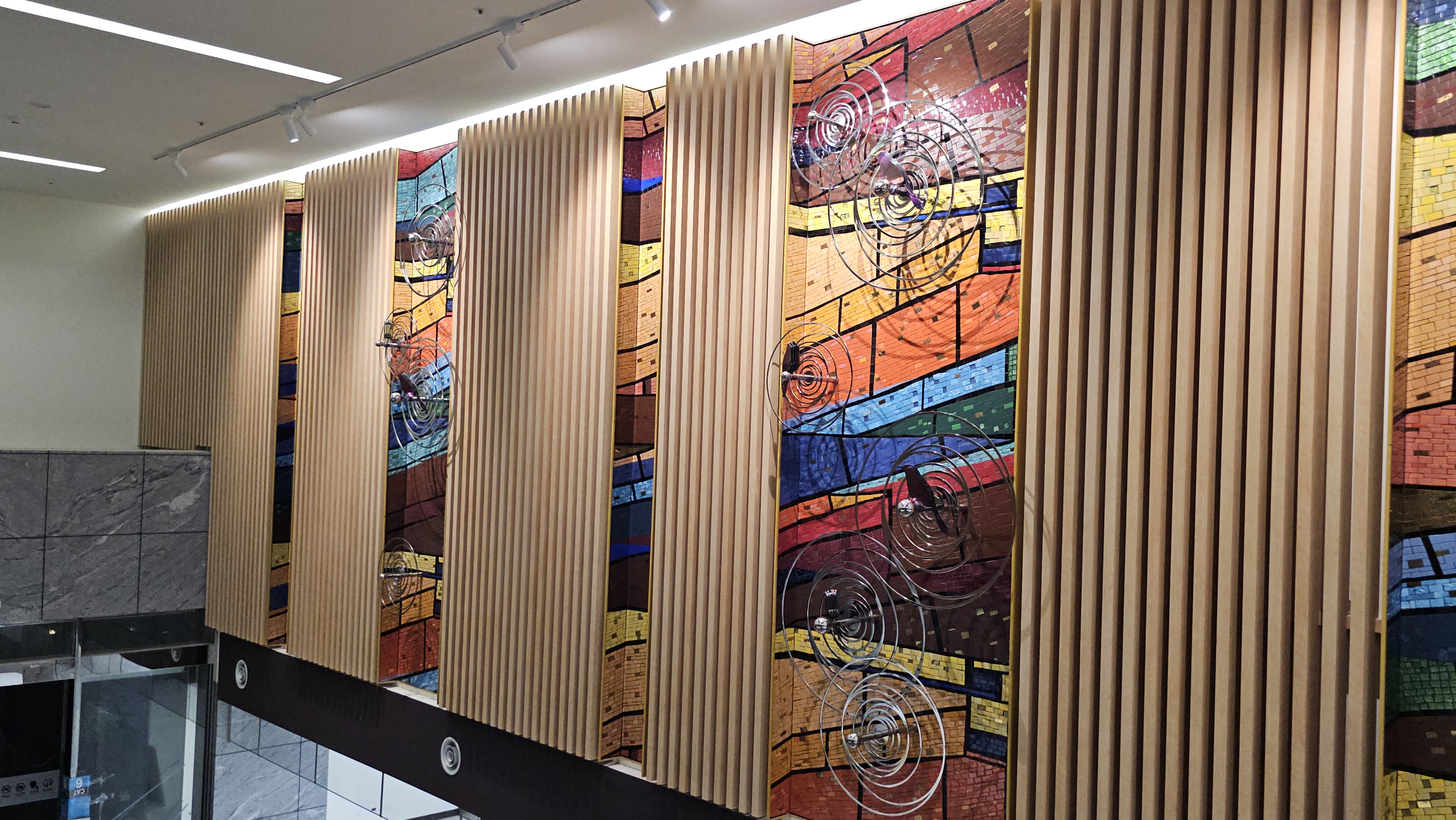 Medical Systems serve people as a garden rotating in four seasons. The bright yellow, red, orange, and tangerine colors mingle together like natural sunshine that shines the healthy energy and vibrant vibes. The wall is decorated with ripples of different sizes, and birds rest or fly through the ripples singing vitality of lives. People can enjoy top notch services here as the ripples are linked in circles distributing healthy energy and hopes.
