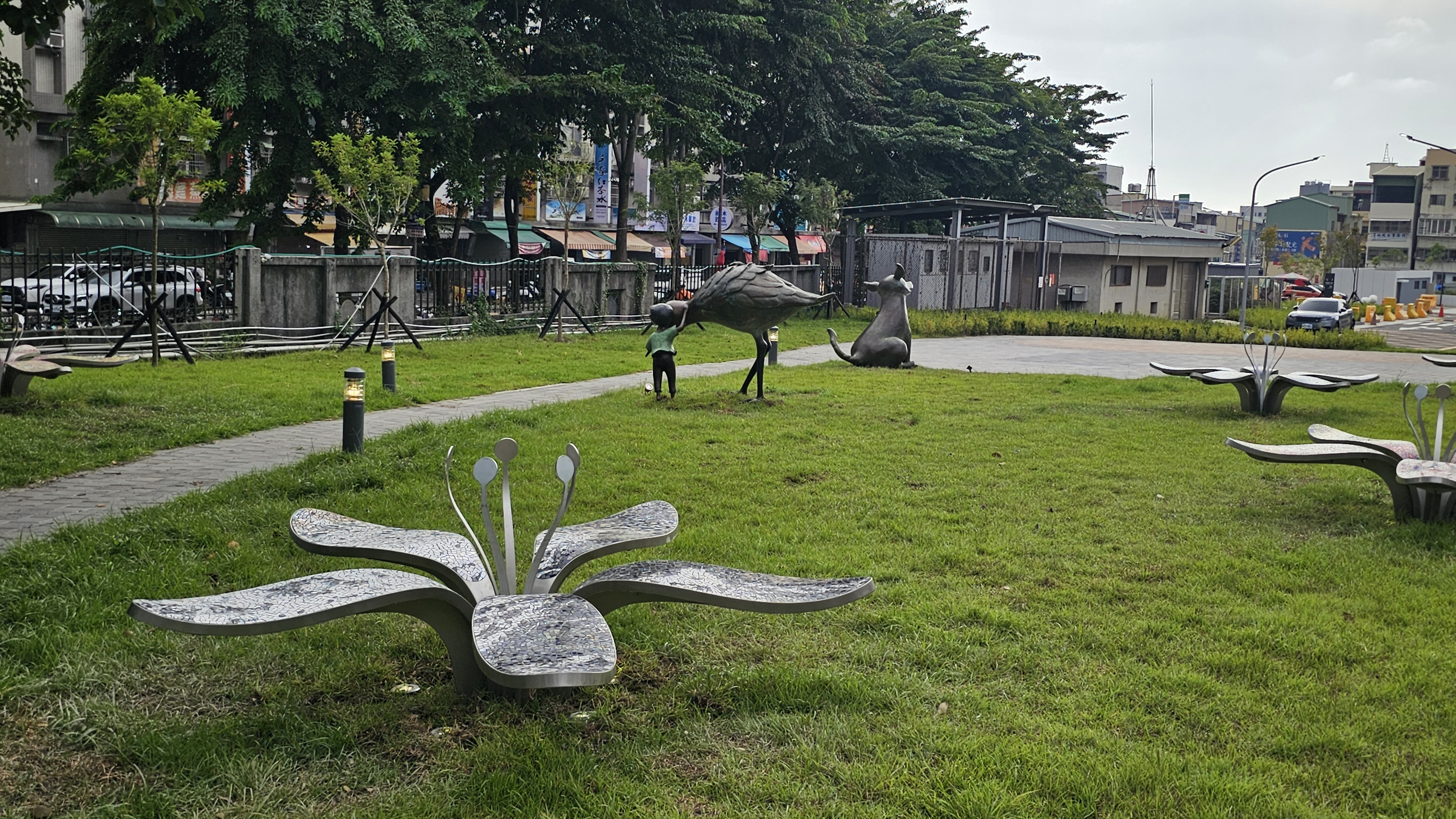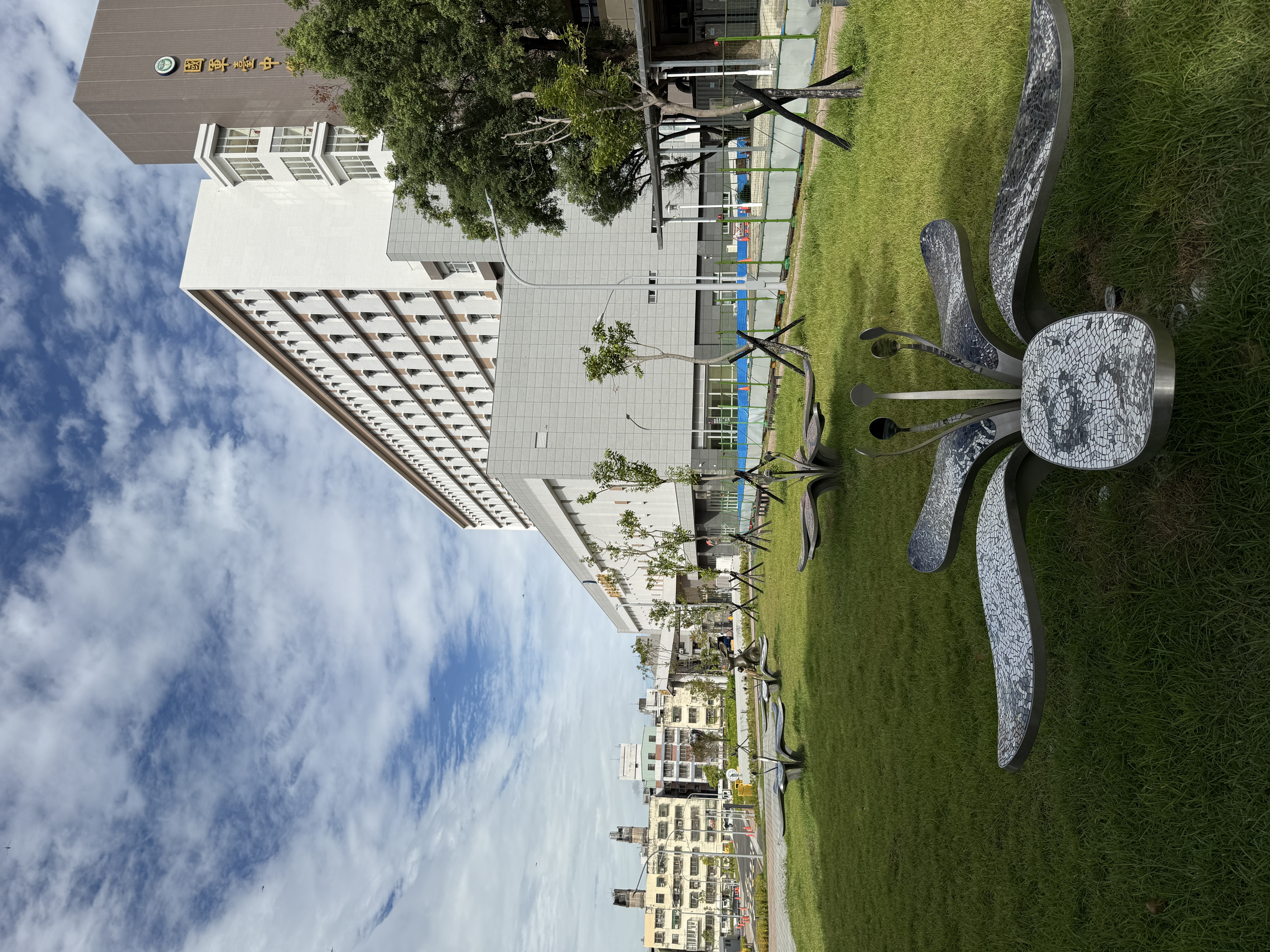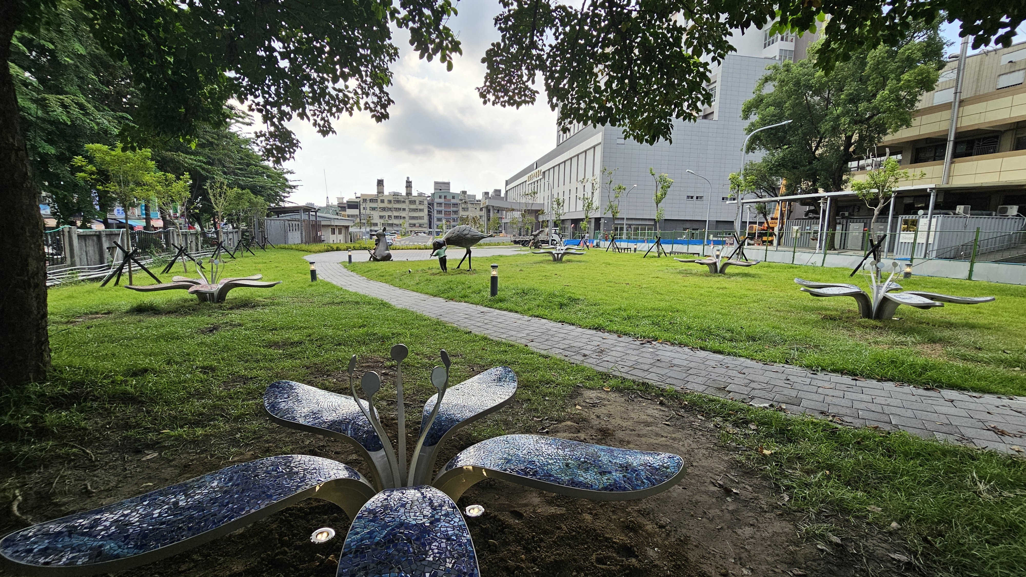 The colorful flower-shaped chairs blossom on the grass. The flowers are embedded with mosaic glasses like the mysterious cells, and the flowers also represent skilled medical staff and superior medical equipment, which enable in-depth medical researches and simultaneously nourish the patients’ physical and mental health.
