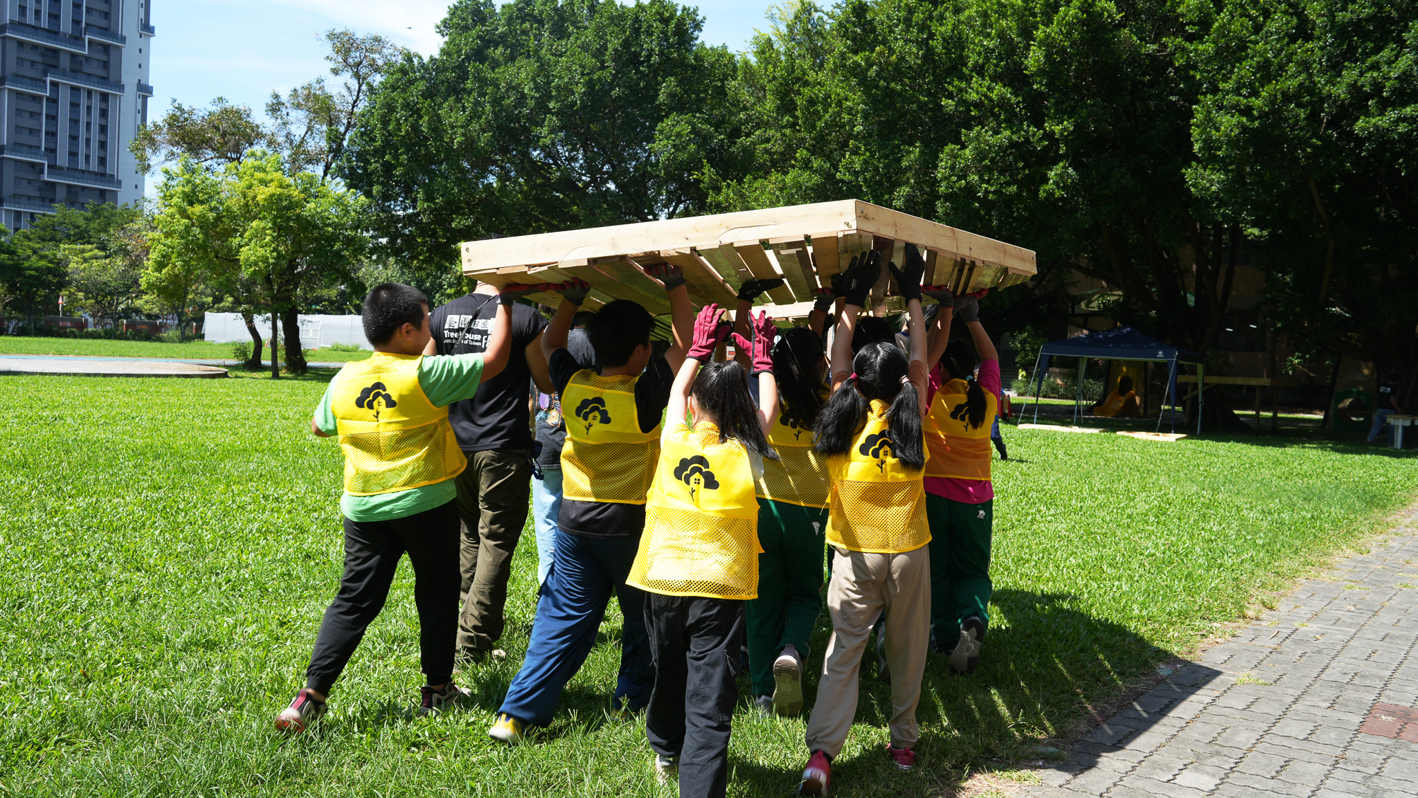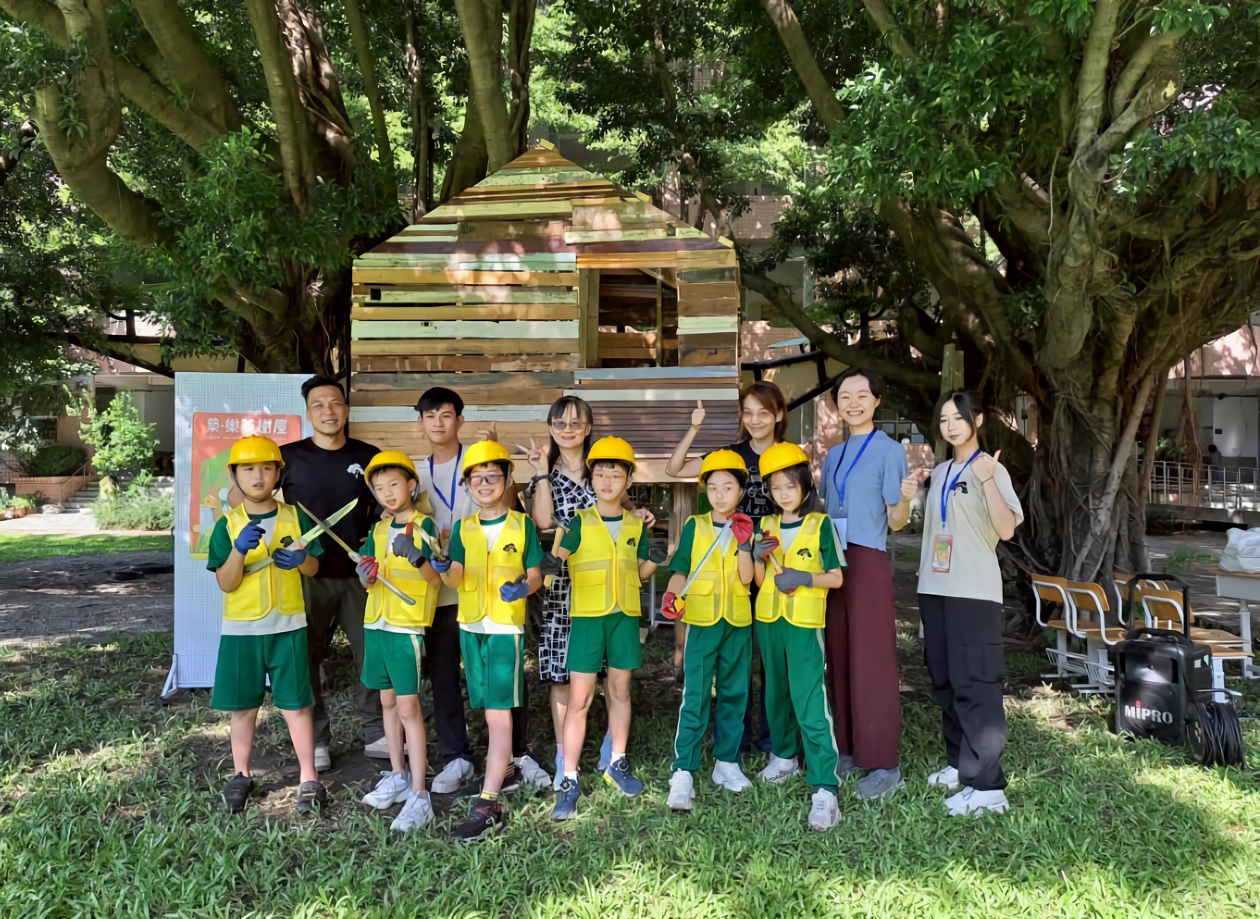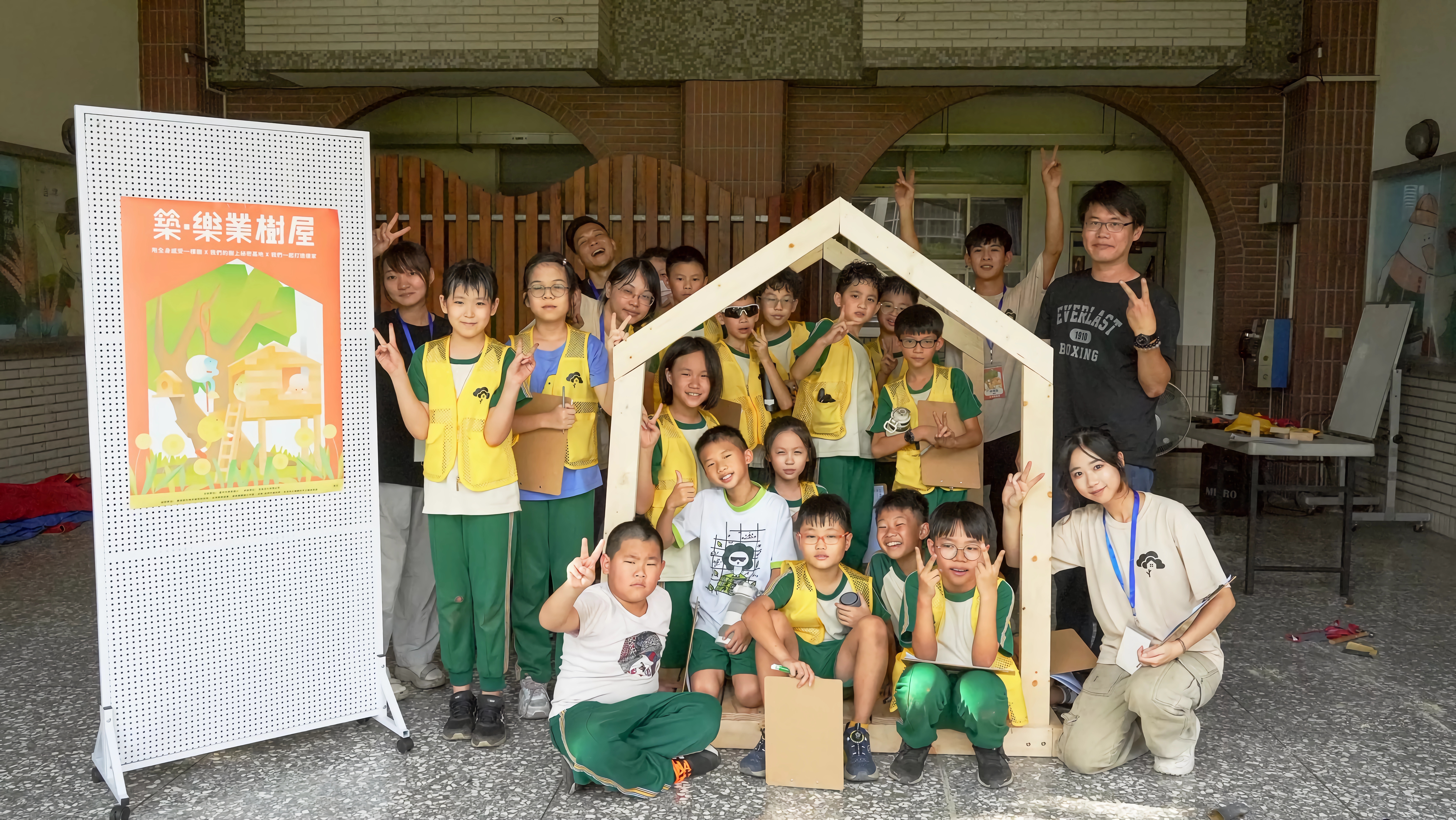 透過「築.樂業樹屋」公共藝術教育計畫,由五年級學生親自參與木作施作。透過專業引導,學生在實作中學習基礎木工技能與空間結構概念, 落實公共藝術深耕校園的精神,共同打造屬於師生的校園新地標。