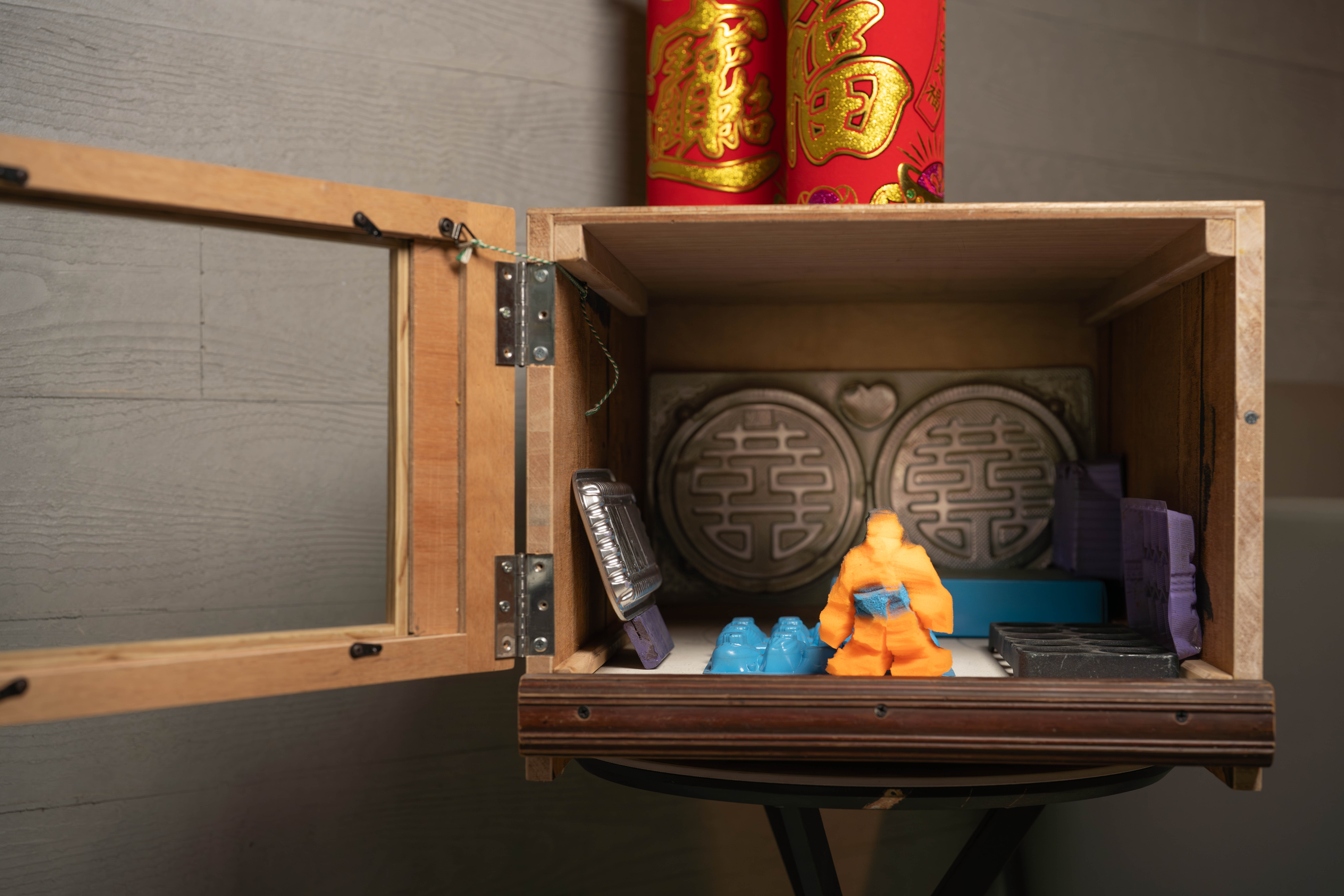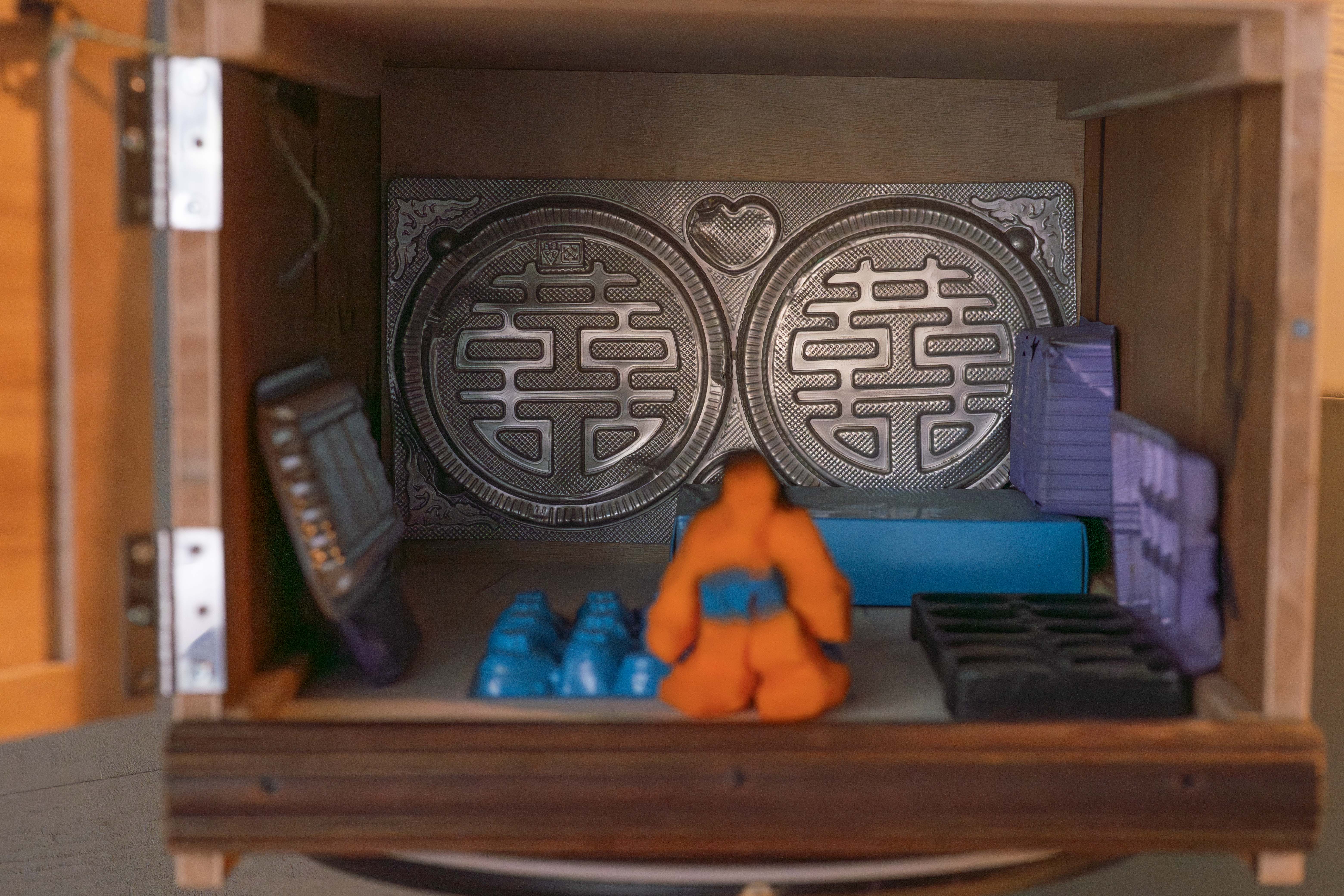 在社會住宅的觀察裡,這種「實用家具」的概念尤其鮮明。居民回家像走入整齊劃一的水泥格子,彼此少有交集,真正的互動多出現在屋頂花園、二樓平台或夜晚的公共場域。日常時刻,人們多半留在家裡,透過螢幕度日。反倒是社宅的 line 群組,以門牌與樓層互稱,展現了另一種虛擬的人味。雖然建築外觀一致,但每戶因背景、職業與興趣不同,而展現獨特性。這些差異常常透過家具顯現:被遺忘的吉他、停用的滑板、淘汰的衣物與玩具、替換的第一批家具,甚至因搬遷而留下的空位,都記錄著不同的生命階段。
