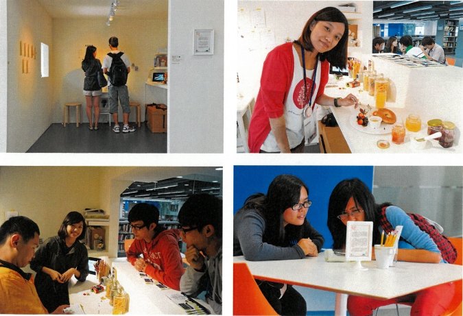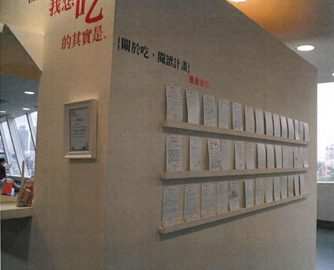 - 擁有甜點執照的女性藝術家林玉婷,結合閱讀書本、文宁與美食甜點的造型意像,創造出各式美味的閱讀裝置,在圖書館內打造一座藝術甜點閱讀小攤!其中收錄了四組不同屬性的書籍中的飲食片段,轉化成為藝術菜單,同時,精心安排每日店長閱讀分享機制,邀請觀眾直接入座點餐,品嚐藝術家與自己的美味記憶。藝術家藉由自己的創作觀點,將味覺轉化成為進入閱讀的分享介面,串聯起藝術家、作品與觀者間的閱讀共感經驗。