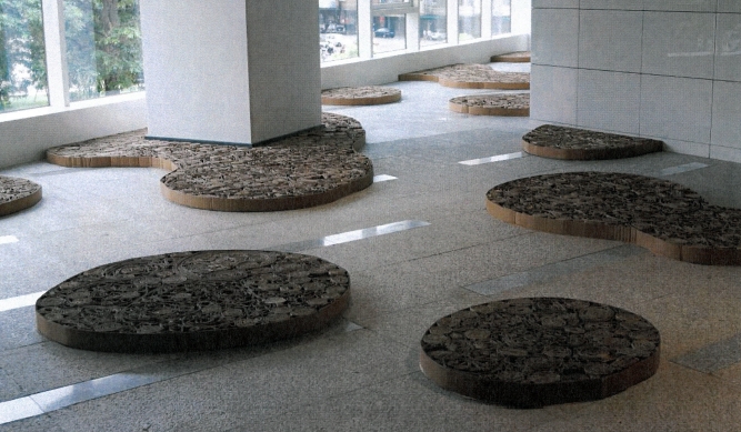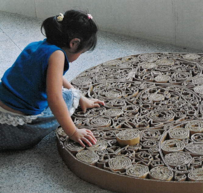 - 藝術家黃沛瀅擅於利用生活常見的媒材進行創作,透過反覆的拆解重組,轉化為宛如生命體般的能最姿態。這次結合民眾一同取材随處可得的瓦楞紙材,結合固有空間條件,拼貼成生動綿密的有機生命體。藝術家透過瓦楞紙片各自將「符號」或「文字」粗裝成「包子」、拼貼成文章時篇,再逐一形成一如「知識地磚」般的空間裝置,從個體轉為群體建構成「無限的認知網絡」•邀約讀者進入其中一步一步的展開自我與他人共築的探索旅程。