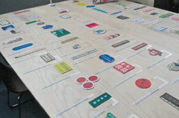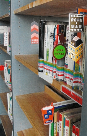 - 將日常生活所在的視覺脈絡微縮植入城市閱讀空間。透過仿擬真實或建構新型式的招牌物件,塑造室內的閱讀空間與都市生活環境的相互比對與映照。此造型性圖書招牌裝置,是為閱讀空間中的互動媒介,走過書列時發現的迷你街景,觸發民眾對於圖書閱讀的細觀。