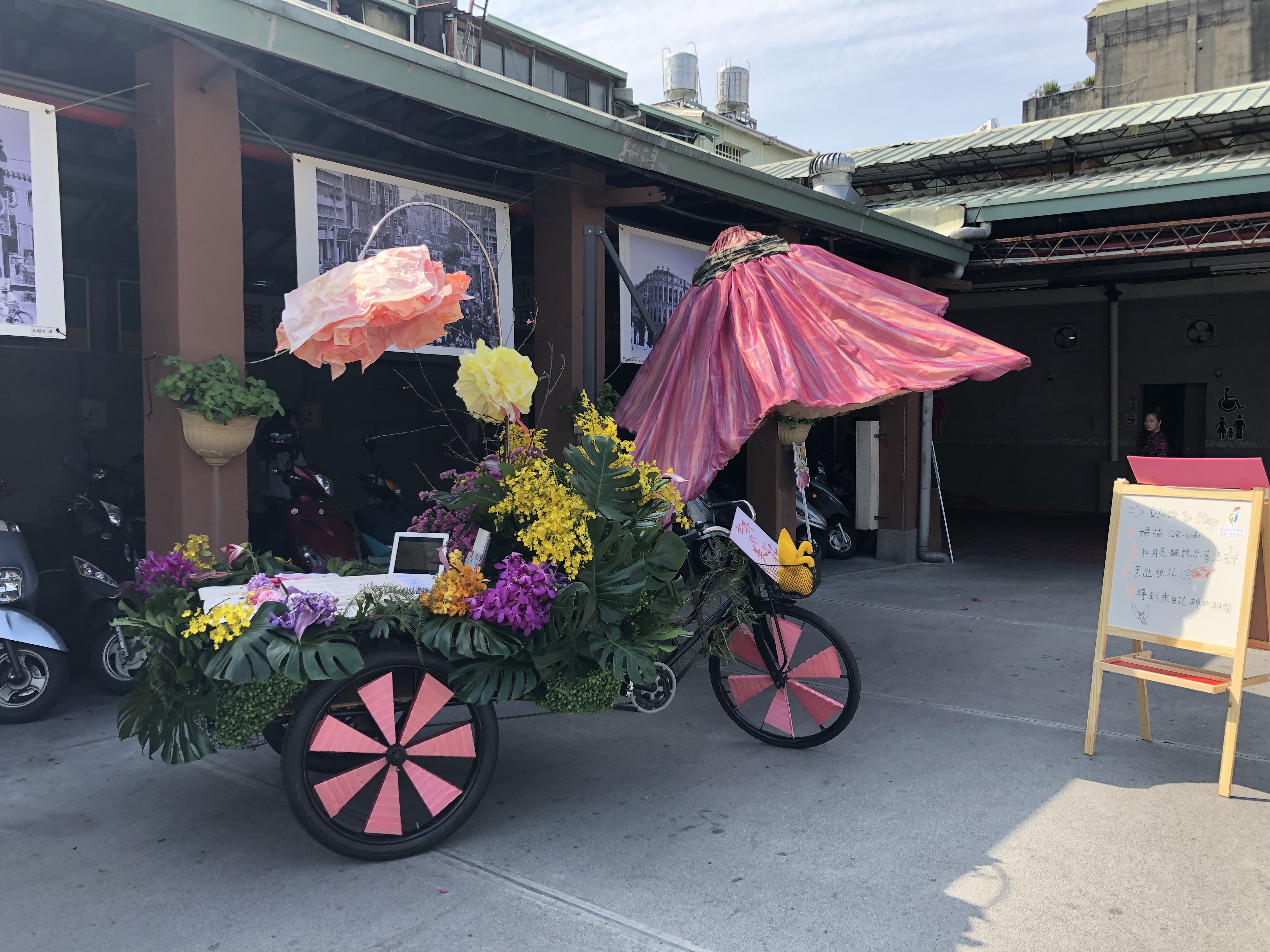 - 「夢想移動花輪」藝術裝置以電動三輪車改裝,作為吸引民眾聚集的移動性裝置藝術,深入台中市區進行「故事交換行動」,以夢想分享的各種形式拉近人與人的距離,紀錄為民眾參與的行為活動。