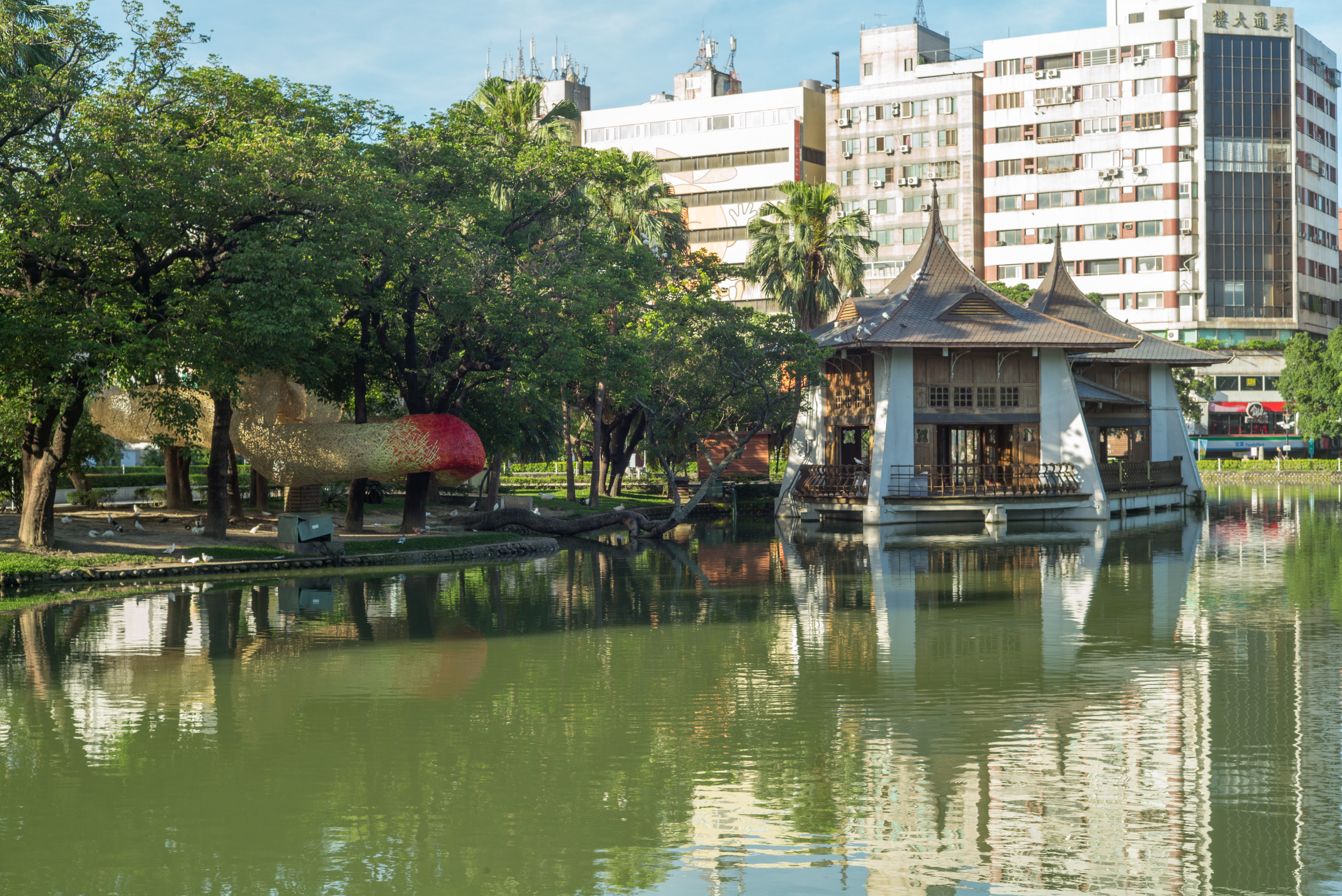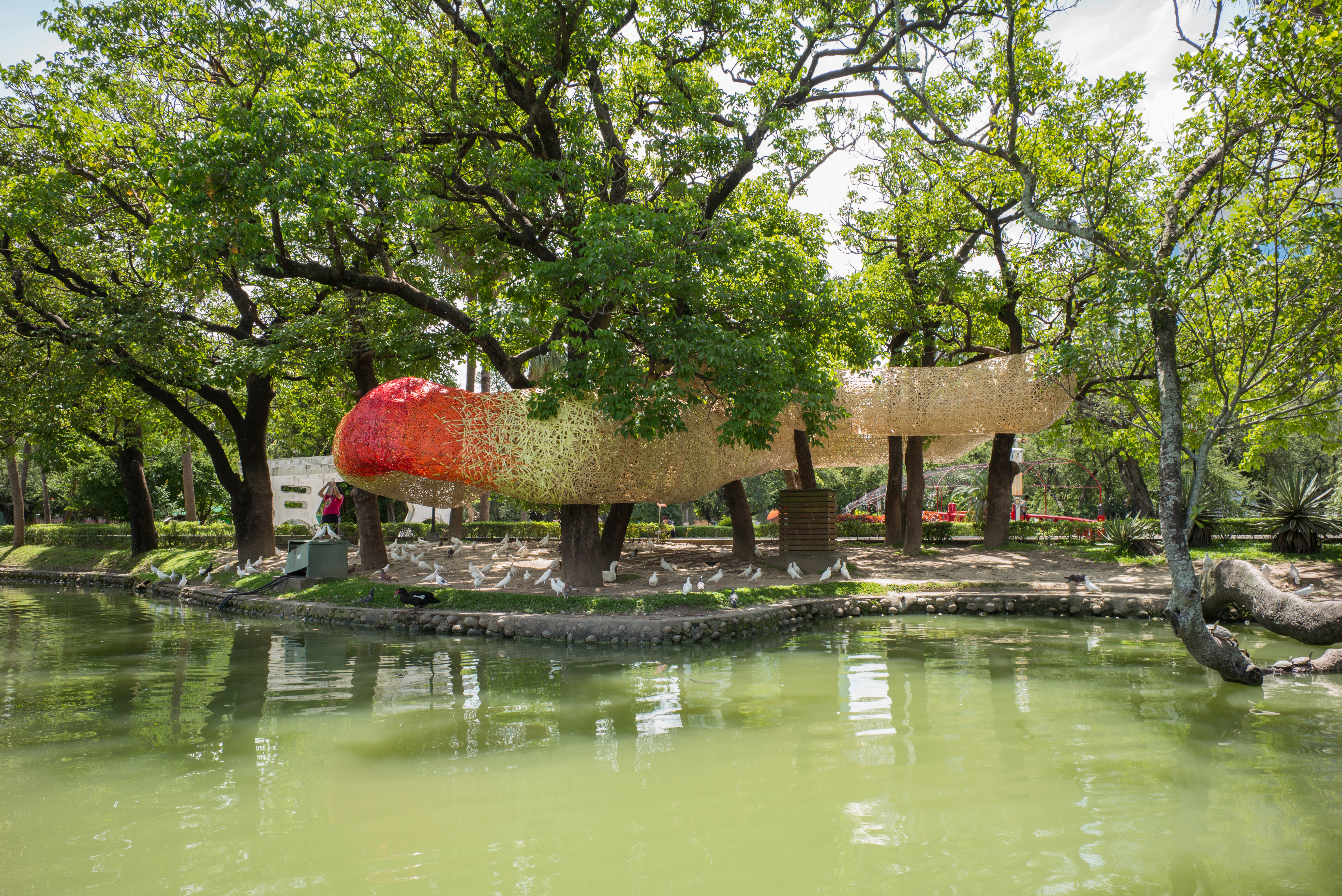 Supported by a cluster of trees alongside the park’s lake, the enormous infinity symbol represents the artist’s hope for the park and the direction of Taipower’s energy management—i.e., an enduring symbiotic relationship that fosters the continuation and creation of new energy possibilities.