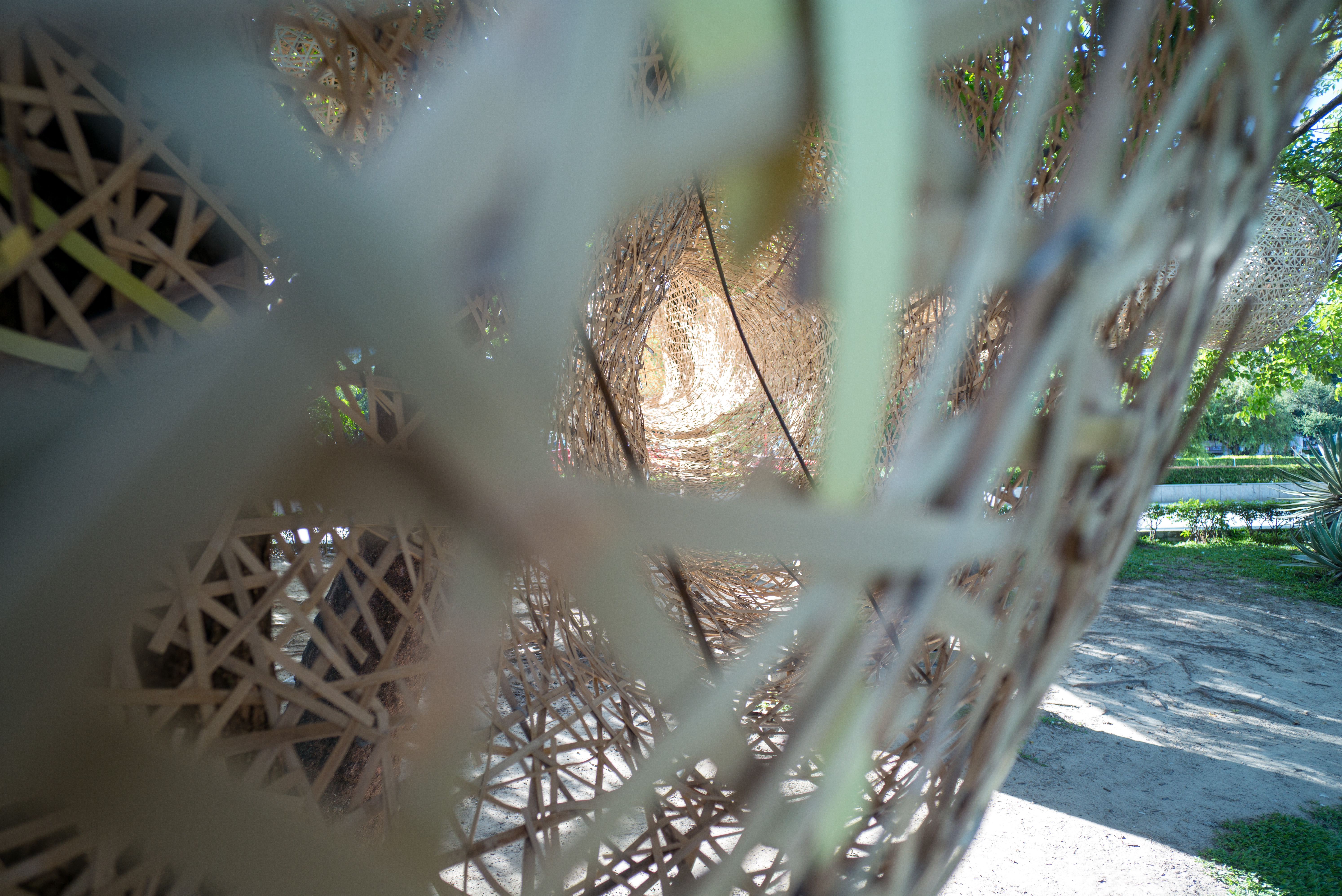 Known for his installations that mimic natural landscapes through the use of natural materials, in Heterogeneity Symbiosis, You Wenfu returns to his preferred mixed medium of bamboo strips and polypropylene packing bands.