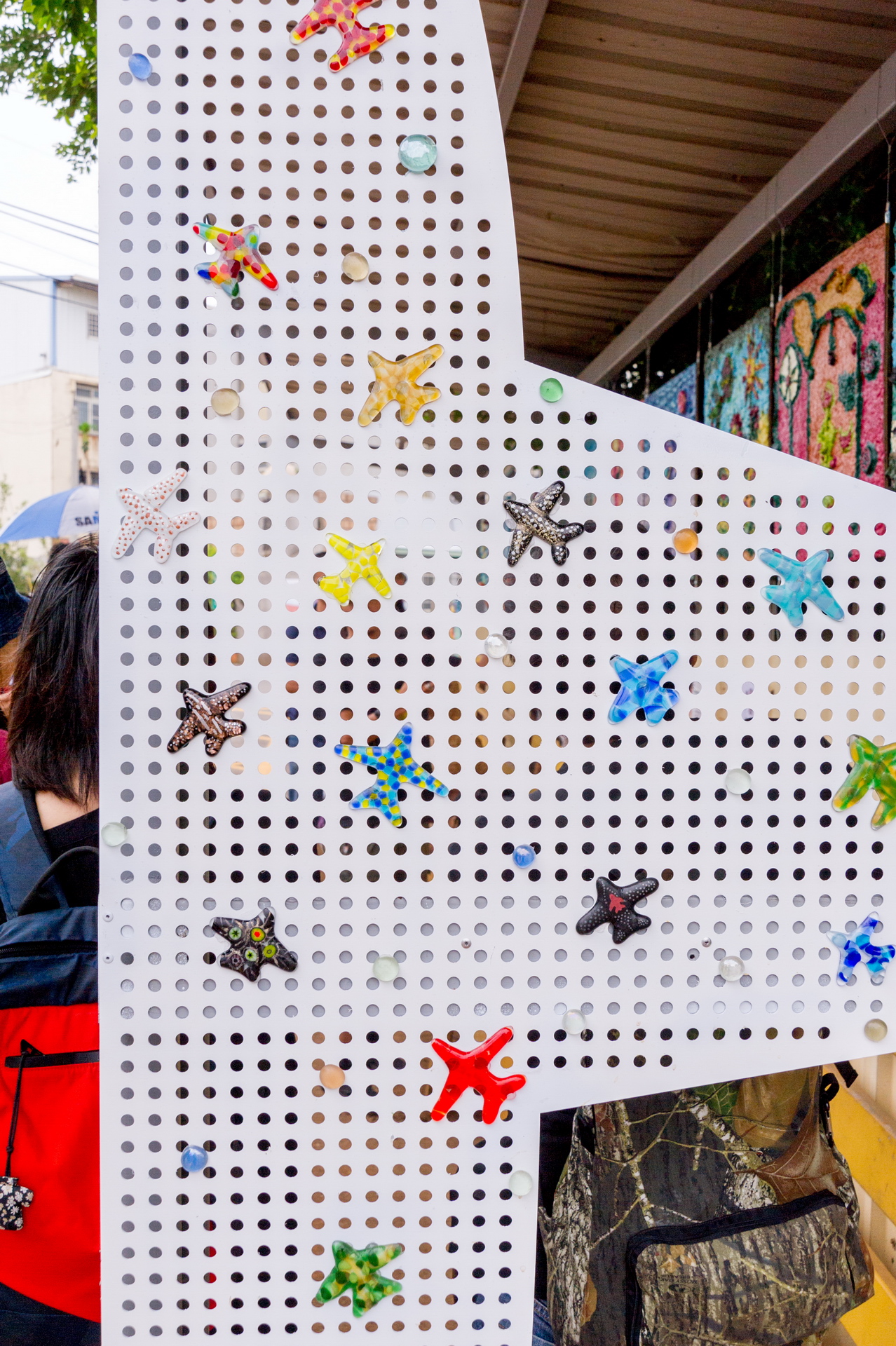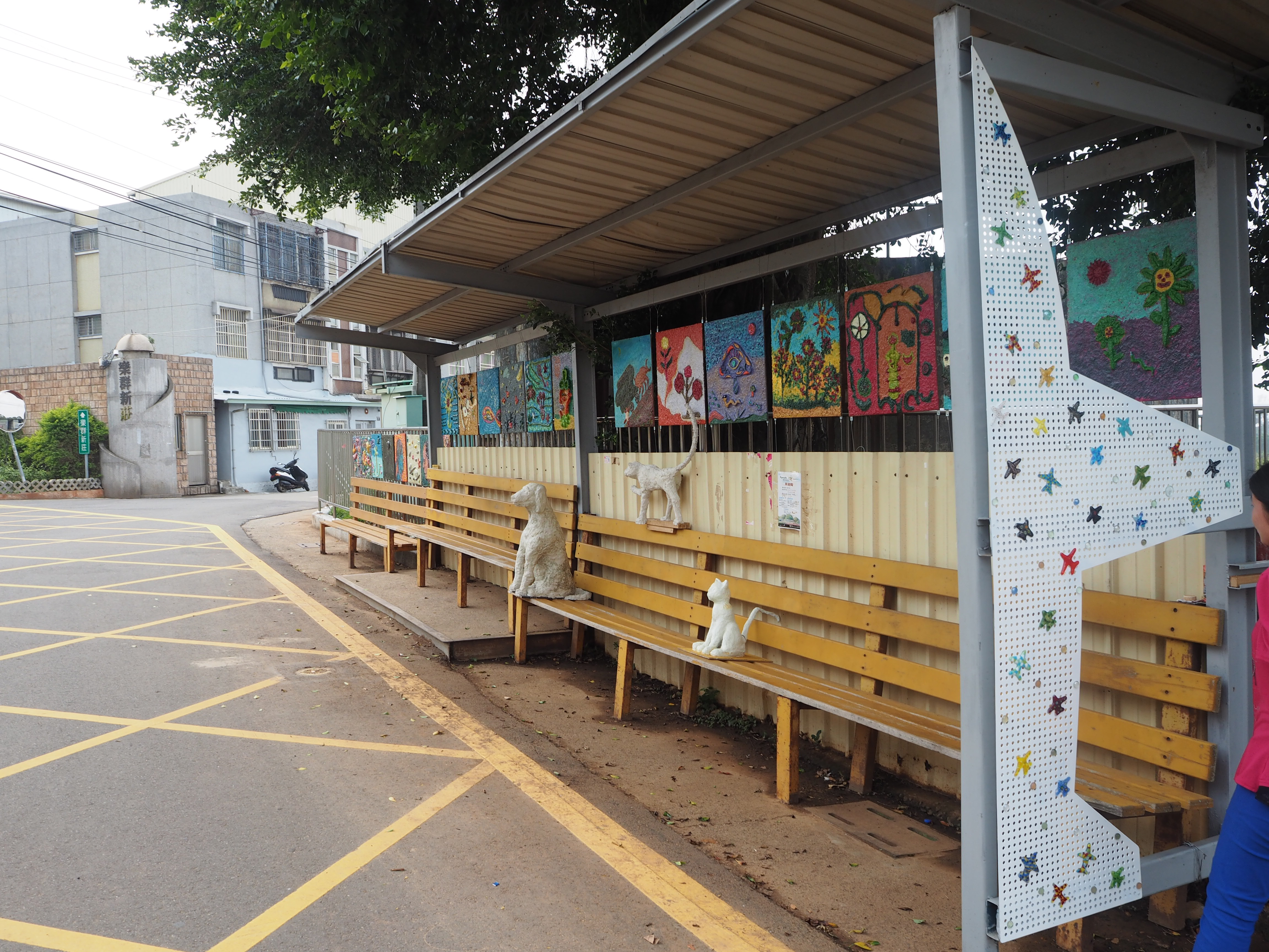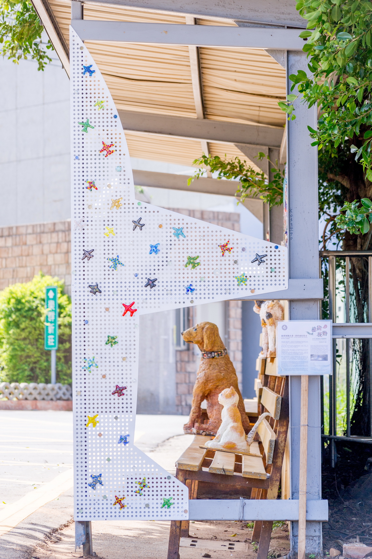 - 延續全案藝術地勤計畫概念,透過曾經於清泉崗空軍基地服役的藝術家陳俊雄,擇定社區聚集焦點「樂群新莊入口右側長廊涼亭」進行藝術修補計畫,考量該空間為地區居民休憩集聚的重要地點,且鄰近黃昏市場為居民意見交流的開放場域。