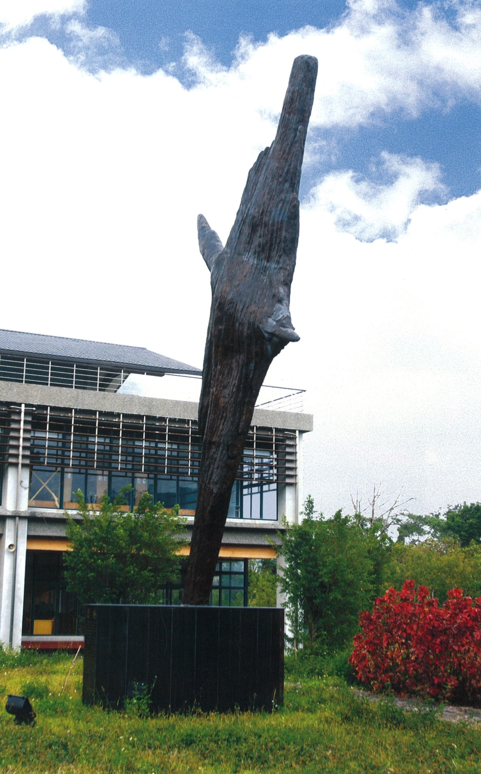 - 作品型塑「鷹揚」浴火重生展翅高飛之姿,以展現921災後重生的精神,並結合林業務局林業博物館,取材木材線條、紋理、造型等特色。