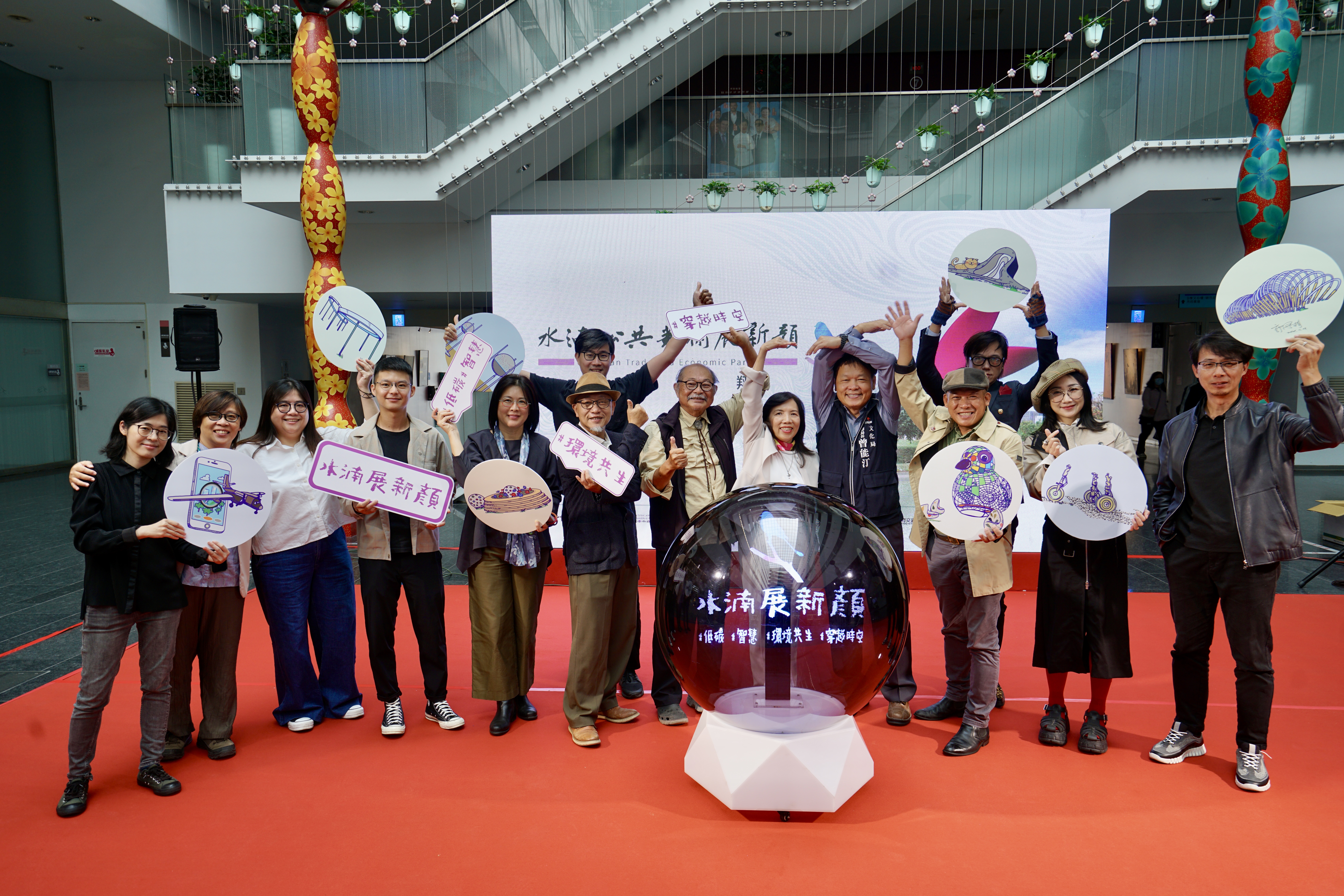 施純福副局長進一步指出,本案以「低碳、智慧、環境共生」為核心理念,涵蓋風動、光影、互動與 AR 等多元形式,並運用回收塑料、不鏽鋼、玻璃等素材,呼應環境永續。未來隨著綠美圖 、國際會展中心及水湳轉運中心等重大建設陸續完成,將有更多公共藝術作品加入,期待將園區形塑一條兼具建設與藝術的藝術廊帶,展現臺中市的活力與多元面貌。